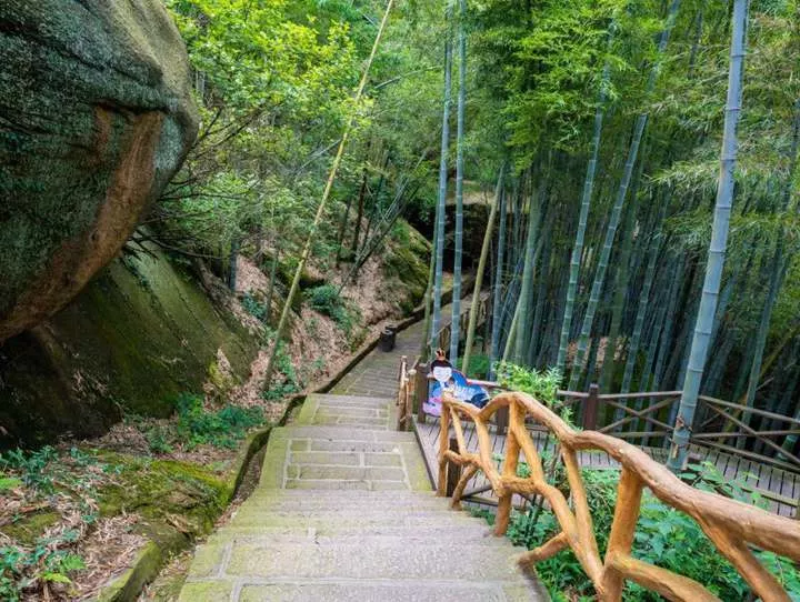 沿着碧#莲池环绕,走到主景区入口,映入眼帘的是石阶竹海,