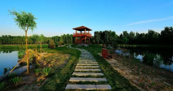 孝义孝河省级重要湿地内湖泊水系多,水域面积大,有30余组河湖相连,相互贯通,纵横交错,形成特有的湿地景观。公园内树木品种多,植被资源丰富。有各类乔灌木38万株,地被植物30万平方米,森林覆盖率达到25%以上,每天释放氧气约一亿吨,已成为一个天然的湿地氧吧,在这里可以感受到水流潺潺,小桥流水,现已成为市民领略自然山水和消夏避暑的胜地。