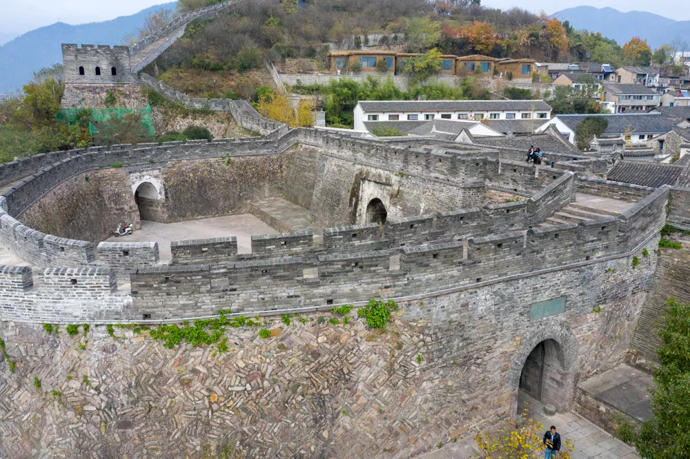 江南长城的风格与北京的一样,青石砖筑成一条长长的防线,唯一不同的是这里沿途还能看到一个炮台。