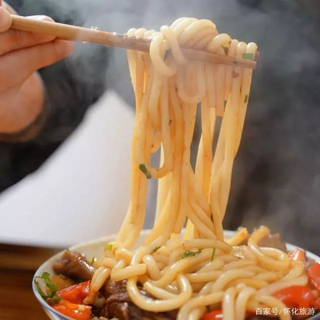 第三天早上,先去“嗦”一碗顺滑筋斗、香辣可口的洪江鸭子粉,或者是试一试粉面“二合一”,米粉的劲道和碱水面的柔和结合得恰到好处。
