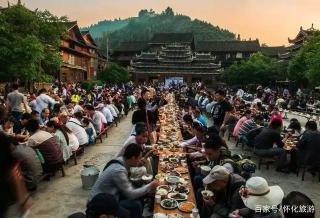 三里侗寨,热情的拦门酒在三里海上侗寨,不仅可以住海景民宿,还能品尝到百家长宴,游客可以喝到当地人自酿的米酒。