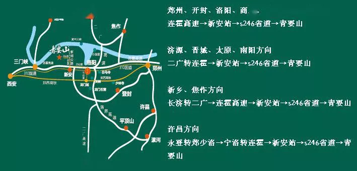 宁洛转连霍→新安站→s246省道→青要山