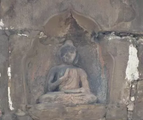 图为在金刚塔东壁劵式门洞右侧的藏文题记碑刻(碑面已严重风化脱层)