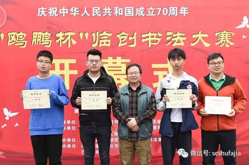 舒炯先生代表成都市文联和成都市书法家协会对本次大赛的成功举办表示热烈祝贺。他说,龙泉驿区书法创作成果显著,尤其最近两年龙泉在国家、省、市各级比赛中频传佳绩。他表示,此次龙泉驿区“鸥鹏杯”庆祝新中国成立70周年临创书法大展作品质量很高,体现了选手们较好的艺术修养和临创水平。他说,临和创是学习书法经典的一种重要方式和途径,是学好书法的不二法门。只有通过深入临摹,才能真正领略书法艺术经典的魅力。他希望大家在学习书法过程中,要加强对经典书法的全面认识和理解,深入临摹,为创作打下坚实基础,书写出具有时代特色的优秀作品,为中华传统文化的复兴贡献自己的力量。