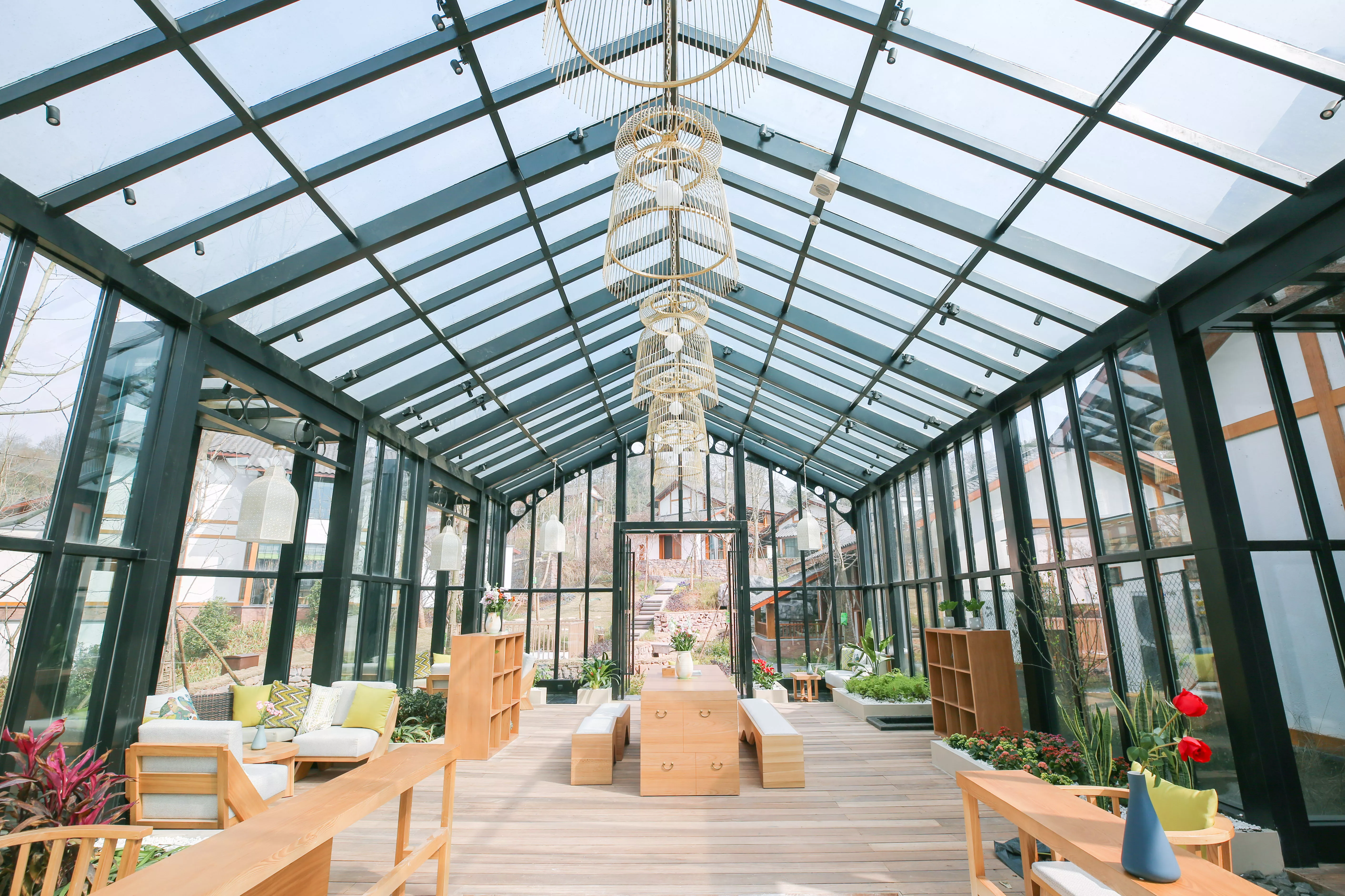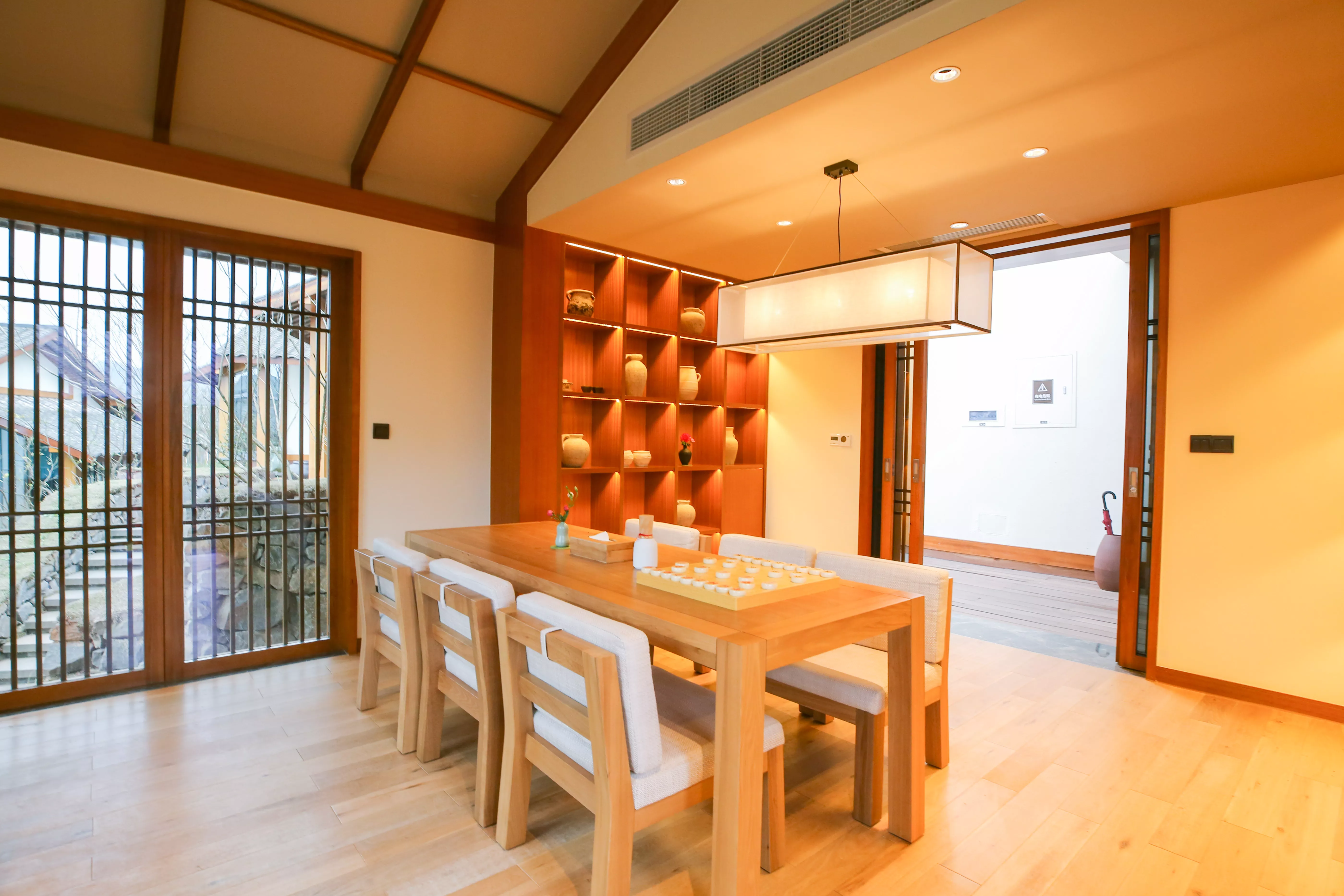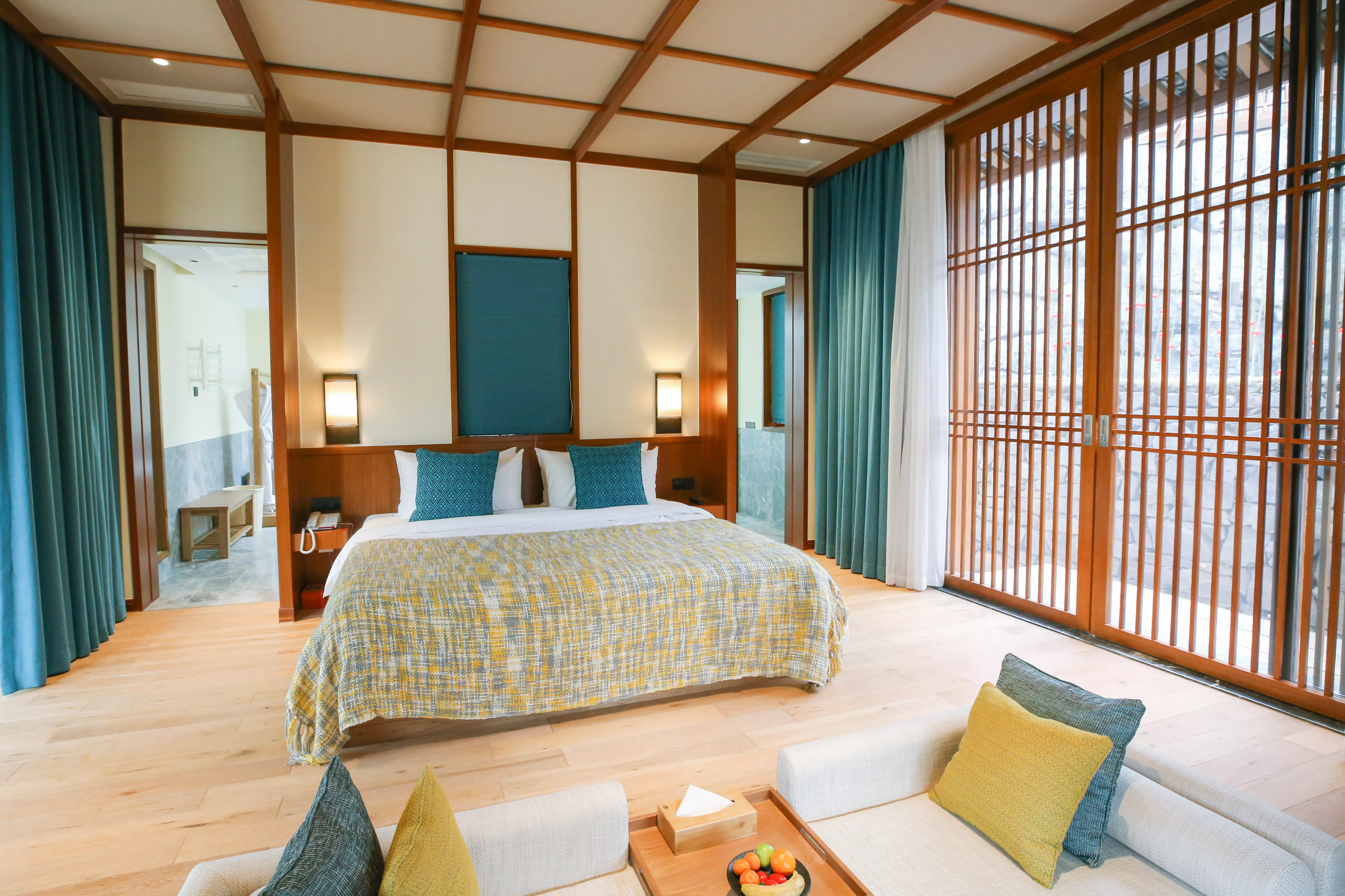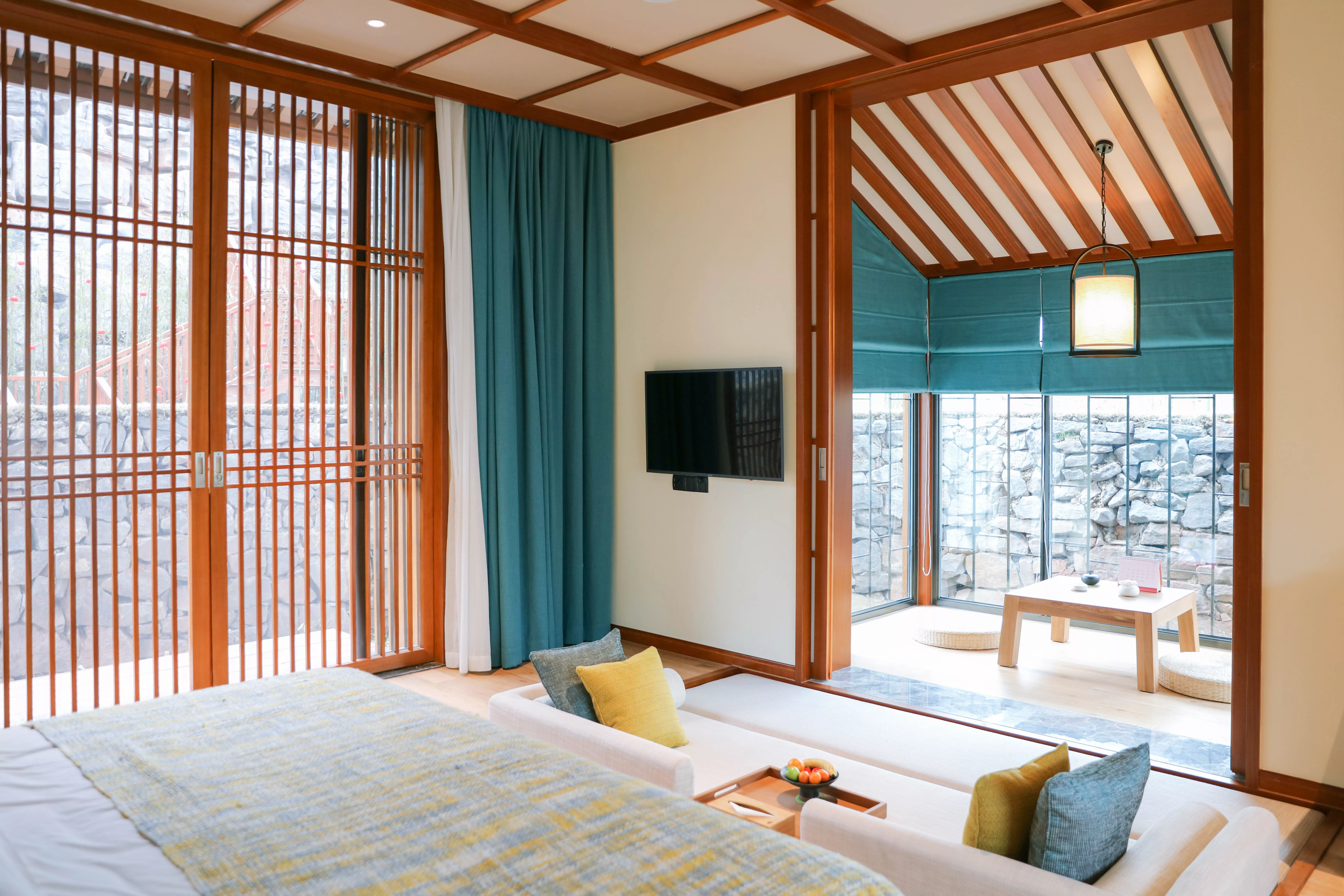 酒店共有八个组团院落,包括庭院特色房、阳光亲子房等五种房型,分别以石花别院、甘露雅居、黄芽雅居、万春雅居、玉叶雅居命名。每个组团配有共享茶室,住客可以在这里烹茶聊天,细品、慢饮,亦可静坐其间,循着窗外高高树立的珍稀金丝楠木林、漫野的花色,氲开一段美好的午后时光。