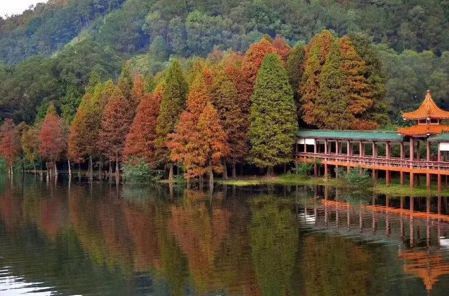 九、十月游长潭,可赏候鸟南渡,大批候鸟(白鹭、黑翅长脚鹬等)在湖面上及森林中盘旋、栖息。