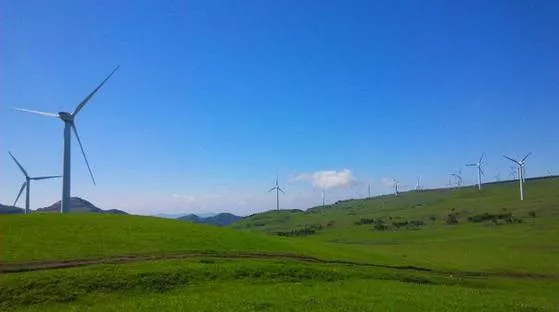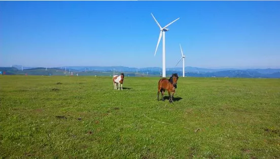 飞狐峪空中草原,不是因为悬在空中,而是因为到了山顶,大山一边是悬崖峭壁,一边是一马平川,绿草如茵,繁花似锦的大草原。连绵的高山草甸,如一块绿毯铺展开来。山顶有很多风力发电的装置,缓慢的旋转速度,让人觉得它好像停止了,但定睛一看,它还在转着,时间也由此缓慢下来,而那几个沿着山梁散布在草地上的风车很像日本动漫里的场景,干干净净的几块颜色,不由得小清新起来。