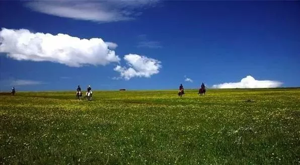 山花烂漫,气候凉爽,天蓝草碧,牛羊满山......