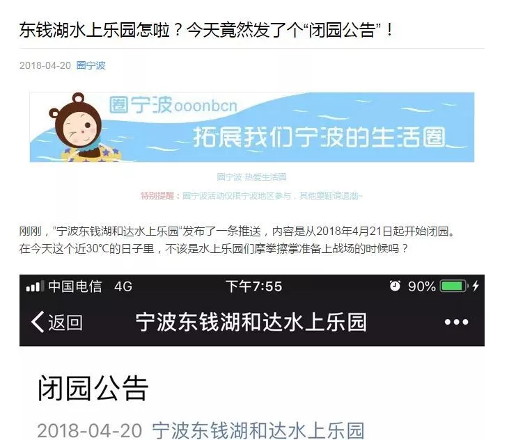 这几天,宁波的天气是越来越热了,本该是水上乐园开园之际,但就在昨天傍晚,东钱湖水上乐园官方微信号发布了闭园公告: