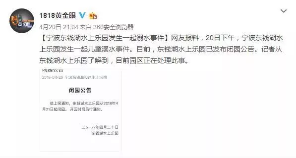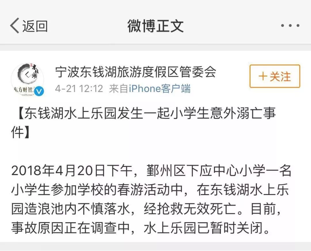 东钱湖水上乐园发生了一起意外,一名小朋友不幸死于园内!