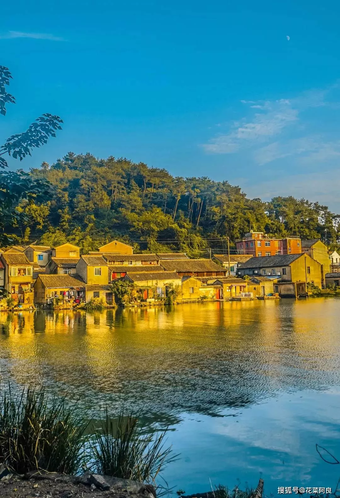 沿着湖边走在乡村小道之上,宽广的湖面之上,青山绿意连绵一片,山脚处平静的湖水,倒映着青山古村,微起涟漪,甚为动人。此时的湖面水平如镜,错落的古村被镀上了一层夕阳的余辉,将其照映的金黄。