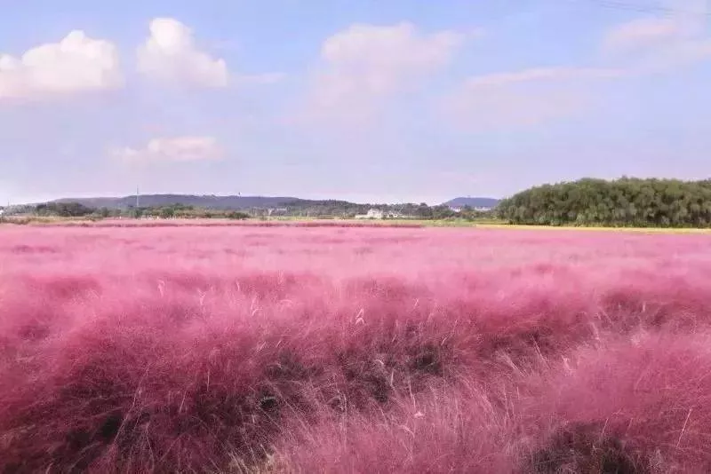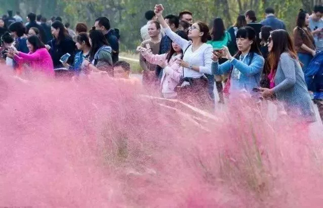 漫步其间,全是风景,融化少女心的粉黛乱子草,不少人前去拍照。