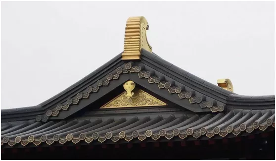 在金色和黑色铜瓦相互间隔交融下,