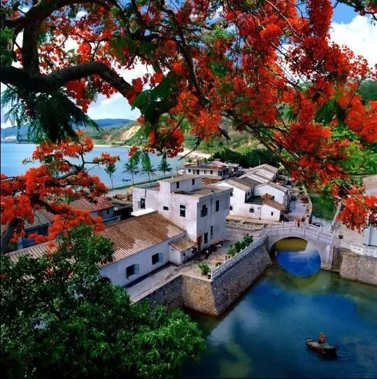 像一轮明净无暇的弯月,一边是苍翠碧绿的林海,一边是湛蓝清澈的大海,风光秀美怡人。