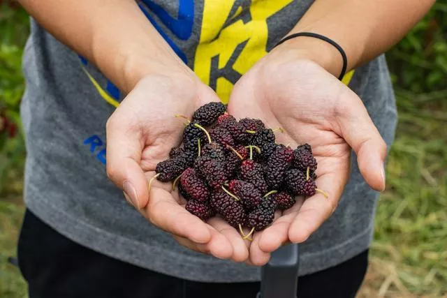 生态园里还能自行采摘桑葚,总喜欢吃但也没有亲自采摘过,来到这里就能有不同于以往的体验,成熟的桑葚悬挂在枝头,树枝全都被压弯了,人头攒动的生态采摘园里还不时能听到孩子们的欢笑打闹声。品尝着自己采摘的果实,才能切身体会到“劳动最光荣”。