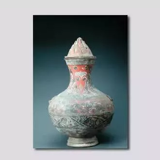 彩绘铺首博山盖陶壶