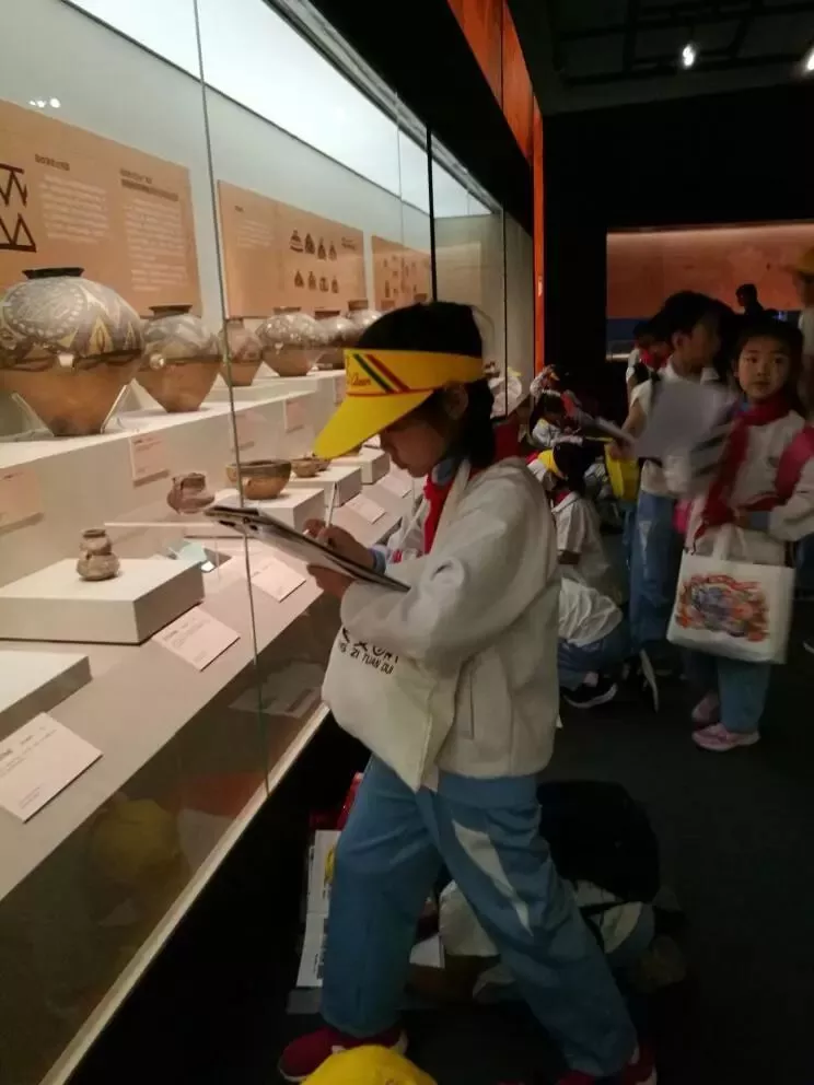 下车后,首先映入眼帘的是一座富有现代艺术气息的灰色建筑,这就是我们此行的目的地——首都博物馆。学生们排着整齐的队伍入场。初入首博,最令孩子们感叹的便是宽阔的大厅、古今融合的美轮美奂的室内装饰,让孩子们感受到了古今文明的融洽并存。踏入一层展馆:山宗•水源•路之冲——一带一路中的青海。在这里,学生了解了青海的文化,了解到改革开放以来在青海这片土地上发生的巨大变化。亲眼目睹出土文物上特殊花纹,了解这些花纹背后的历史内涵孩子们。仿佛眼前真的出现了这样一个族群,这样一群以勤勉著称的人们,在家乡的沃土上奋力拼搏、孜孜不倦地追逐梦想,创造历史的画面。