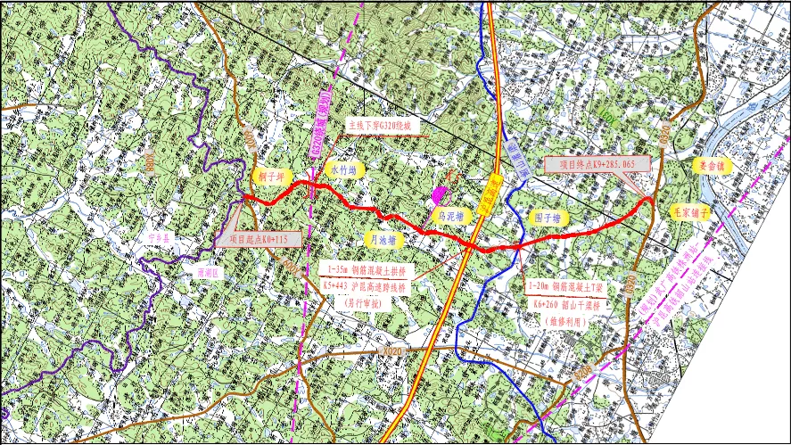 姜道线起于长沙、湘潭两市交界的桐子坪,止于姜畲镇毛家铺子,于G320平交(K1199+000),全长9.17km,途经湘潭市境内姜畲、鹤岭、云湖桥三镇,是湘潭市周边城市通往花明楼景区的重要通道,项目的建成将极大地提升湘潭市西北部的交通路网。