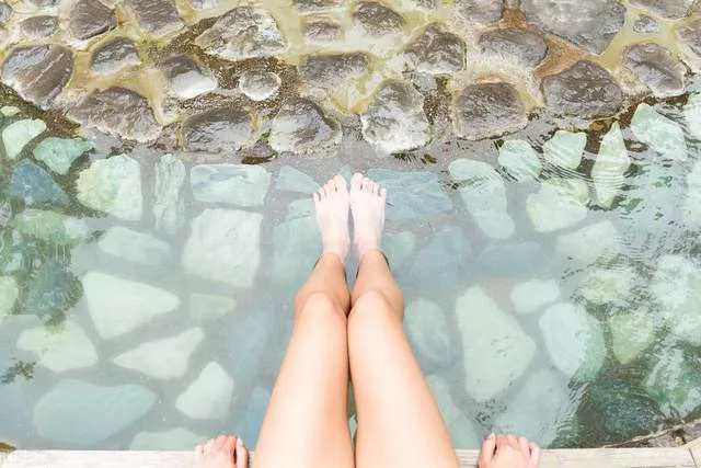 温泉热浴可使肌肉、关节松弛,达到消除疲劳功能。