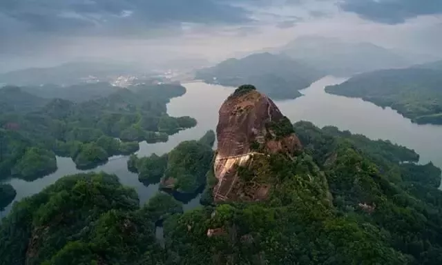 肇庆市九龙湖——位于肇庆市鼎湖区凤凰镇内,集雨林面积达146平方公里,湖面面积达3.67平方公里,平均水深12米,湖面呈“人”字形,由九条山溪水汇合而成,九条山溪又宛如九条蛟龙腾空欲出,故有“九龙湖”之称。