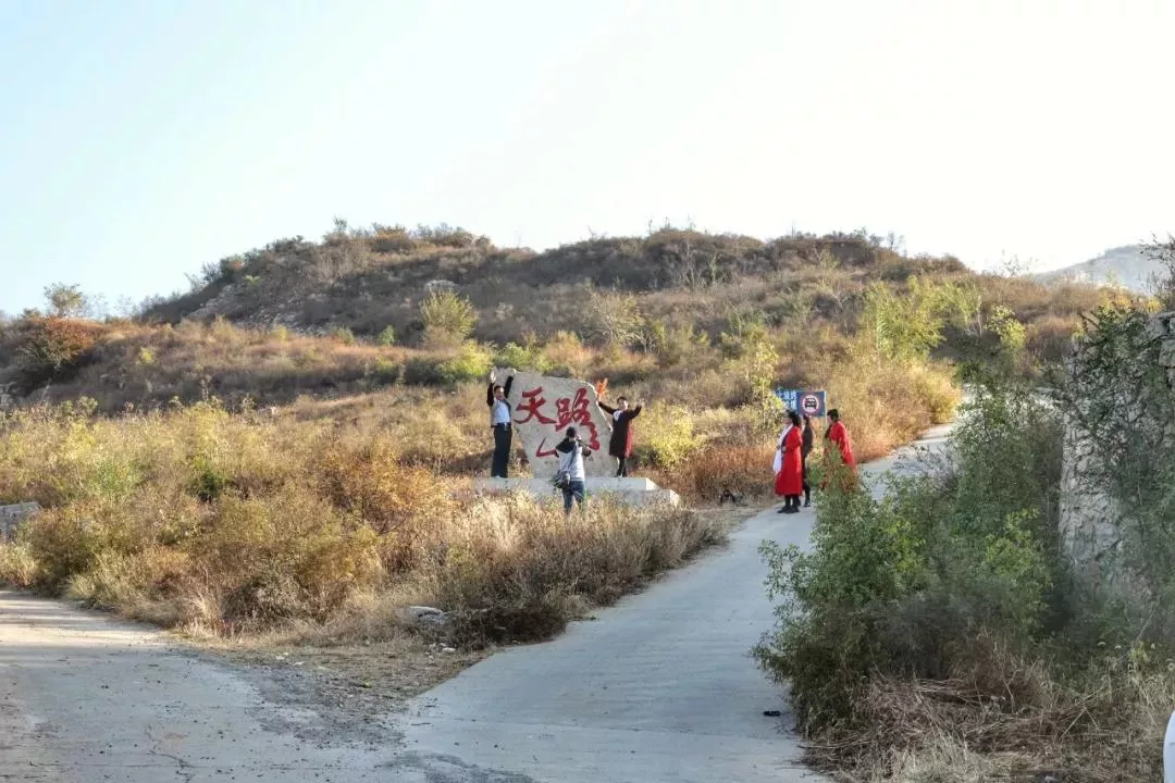 车子驶出村庄,大山便携着火炬树的热情扑面迎来,视野和心情也为之豁然开朗。路标明确指示着,向上行是天路,左侧的水泥路通向红叶谷。