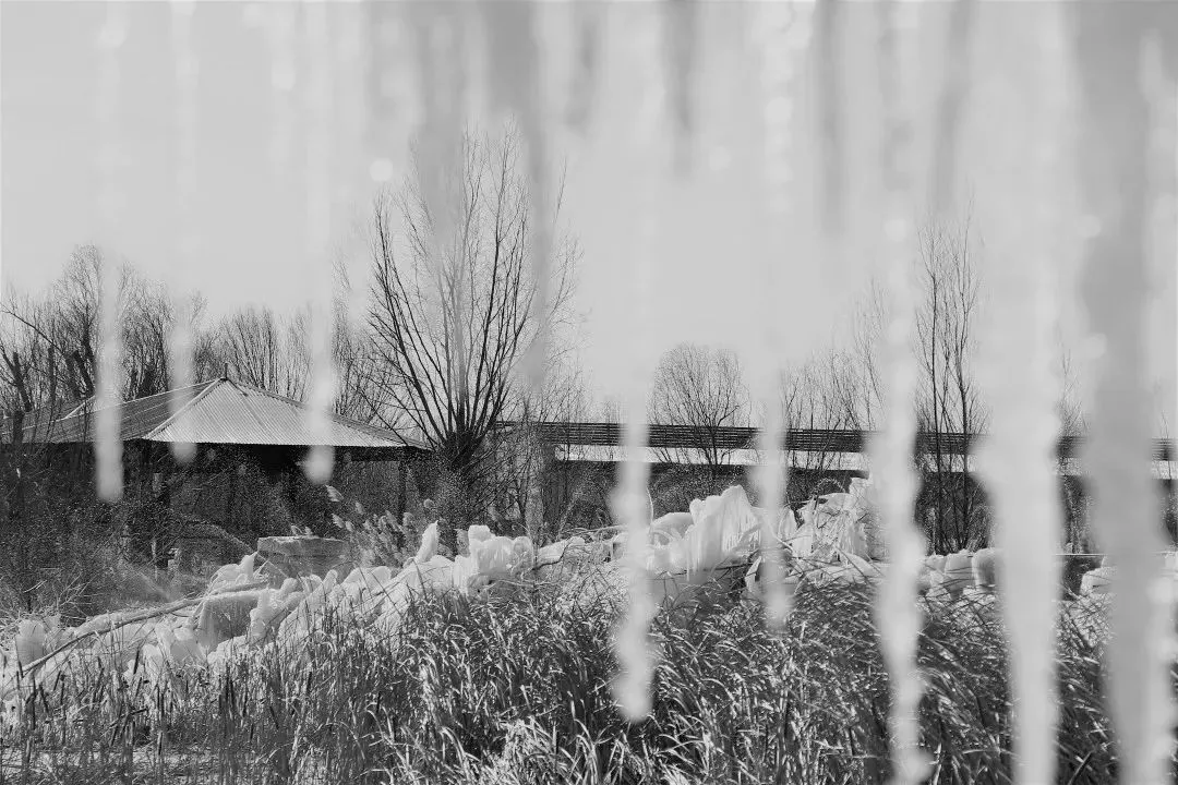 从小桥那边沿着崎岖曲折的山路盘旋上来,看见的,就是这样一幅鬼斧神工的创意冰雕了。