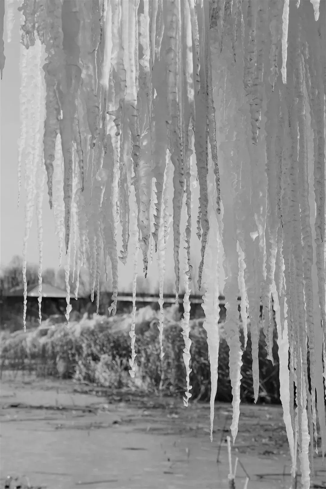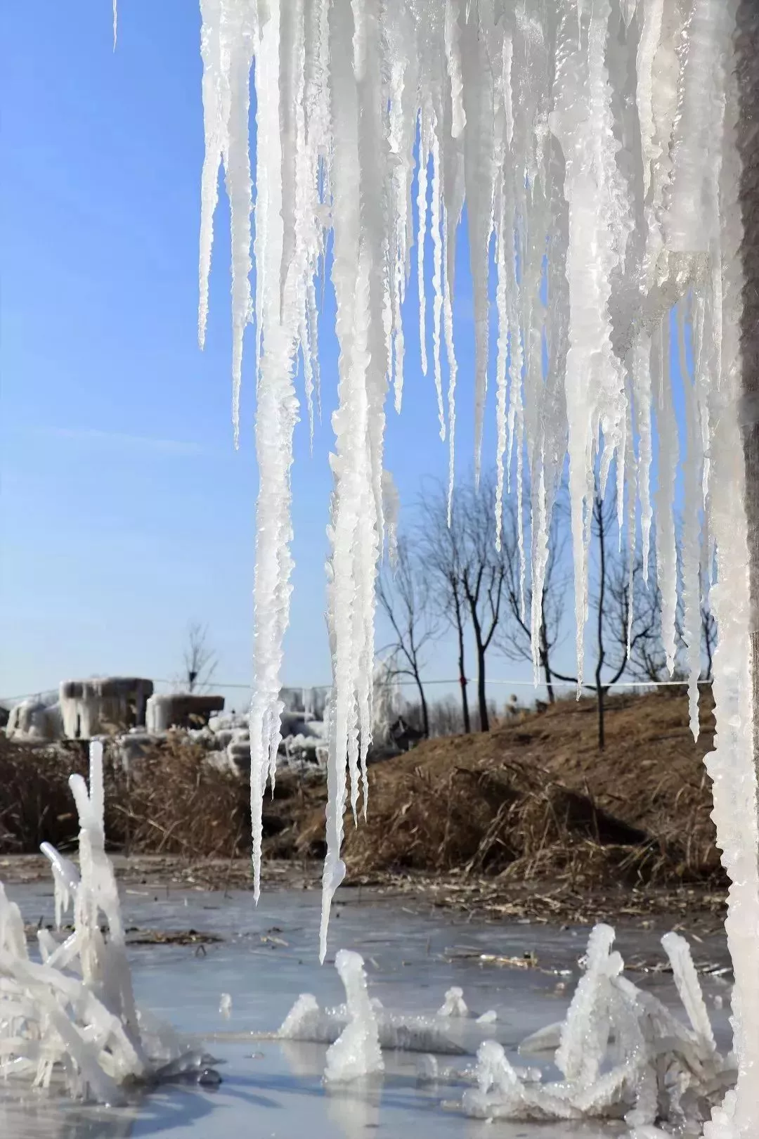 整个画面非常的壮观,一根根冰柱就像是利剑一样,锋利冰莹。