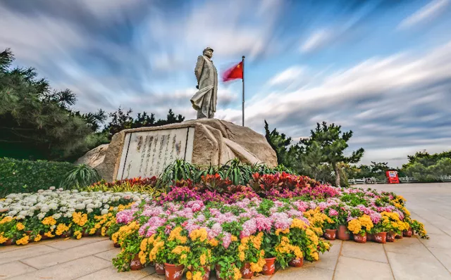 这座高达3.2米的人像雕塑,再现了毛主席观沧海的情景,衣袂飘飘,瞻仰一代伟人之风范。