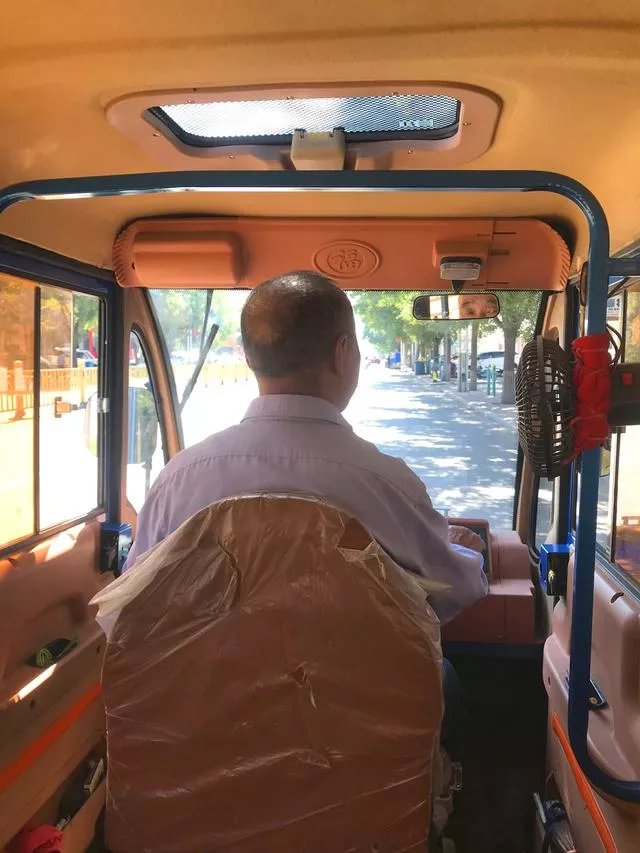 5.两人共坐一辆小游览车游古城;