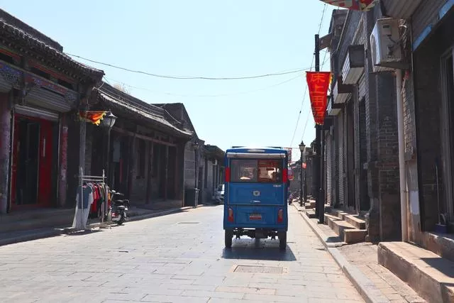 司机师傅是个大好人,到达东观镇的十字路口时把我放下来,还指点我,过道后找这种电瓶车去乔家大院。这下比较顺畅了,和开电瓶车的大爷一拍即合,5元钱把我送到景区入口。我刚坐上车,又看到了两位银发老夫妻,但不管怎么劝,警觉的两人就是不上车。开电瓶车的大爷也很有脾气,并不再劝,开车走人,边开车边嘀咕,走着去,还有5/6里地呢,越有钱越tm抠。在车上,我再三和大爷说,我不着急,咱慢慢开,安全第一。
