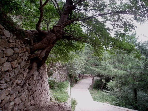 即步云路,从岳门湾原北岳山门(恒宗坊)至恒宗殿,称十里步云路。旧时一里一亭,一步一松,亭亭不同,步步入云。沿路有大字湾、四大夫松等景观。