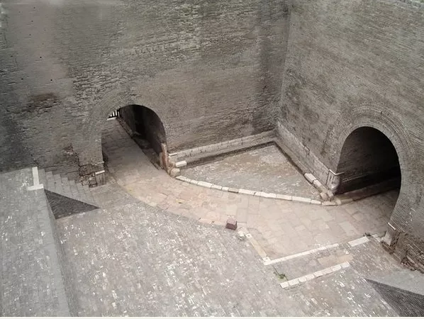 指建在城门外的小城,又叫月城,用以增强城池的防御能力。平遥古城的瓮城城门与大城门的朝向多数呈90°夹角(南门和下东门除外),即便敌军攻破了瓮城城门,还有主城门防御,由于翁城内地方狭窄不易于展开大规模兵力进攻,延缓了敌军的进攻速度,而城墙顶部的守军则可居高临下四面射击,给敌人以致命打击,正所谓关门打狗、瓮中捉鳖。