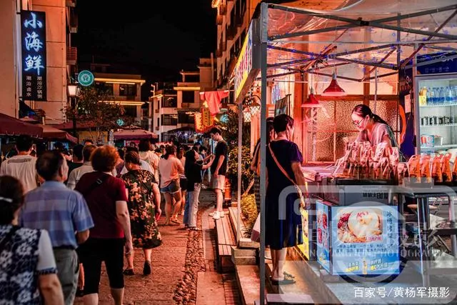夜幕下的渔湾里,灯火通明,人来人往非常热闹。走在人群中空气中弥漫的都是各种美食的味道,不仅勾起人的味蕾。