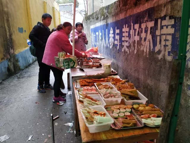 狭窄的小道,我对这里的记忆是,是我们那时候的酸菜、榨菜。记得我们还在读小学时,早餐吃一碗邵阳米粉或是一份小笼包,一元钱就能搞定。而在东塔小学门口摆放的酸菜之类的,1毛或是2毛钱就能满足到我们。对于当时卖酸菜的老奶奶,我想很多在东塔小学读书过的同龄人都会有印象吧?上次再回东塔小学,没有看到记忆里摆在地布上的酸菜和榨菜,但仍然有着不少中小学生爱吃的美食。