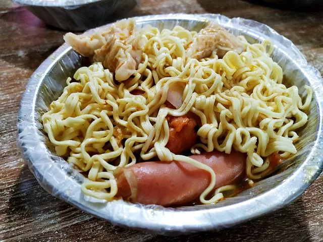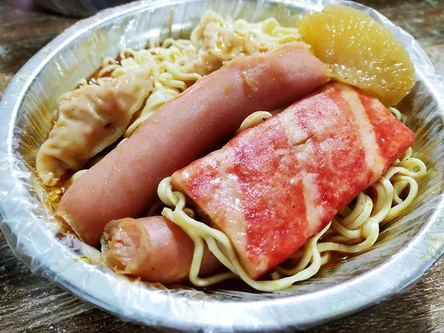 麻辣烫的选择很多,一般来说我会点一份泡面,再搭配着火腿肠、燕饺、骨肉相连、鸡柳、蟹排、萝卜 、黄花菜等菜品。在这儿吃麻辣烫,很容易一不小心就点多,店家的服务态度不是太好,可能就是小城里的惯性吧!比如你和老板说要一串黄花菜,她就会在不经意间给你放两串。