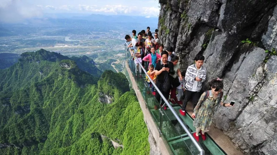 以张家界天门山玻璃栈道为例,这条看着就让人腿软的玻璃栈道给人带来的刺激震撼感。