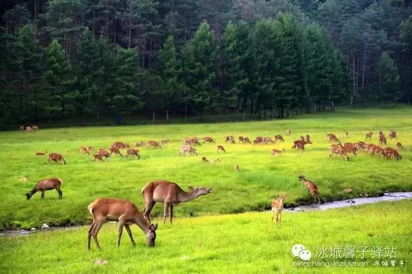 位于金山屯区的东南方,距区址4公里。占地面积764公顷,是我省最大一家半牧式天然养鹿场。现有马鹿、天山马鹿、梅花鹿300多头。这里绿草如茵,溪流淙淙,群山环抱,树木多姿,欧陆风情浓郁,景致浪漫迷人。