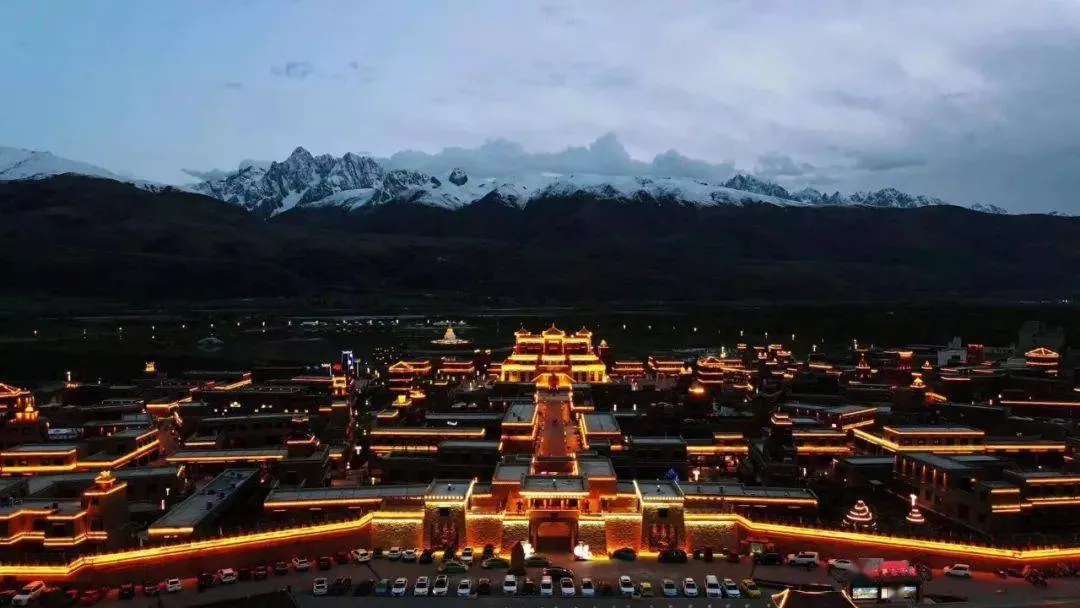 航拍 格萨尔王城夜景