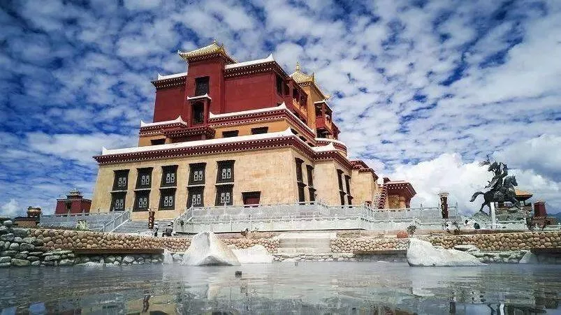 王城的标志性建筑森珠达孜王宫,在静态的文化展示与动态的文化体验中,呈现出格萨尔王征战四方、造福百姓的千秋善业,再现了醇厚的人文风情。