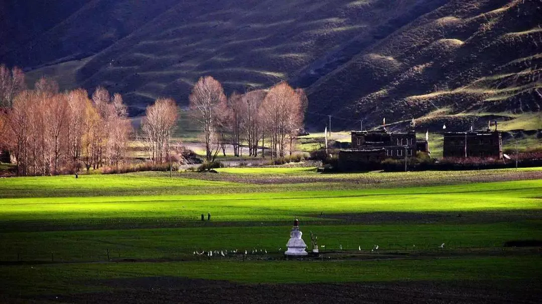 一望无际的章德草原,让游览的人们不仅会有“山穷水复疑无路,柳暗花明又一村”的愉快感觉,而且还可领略藏区的牧场风光、牧区风情。