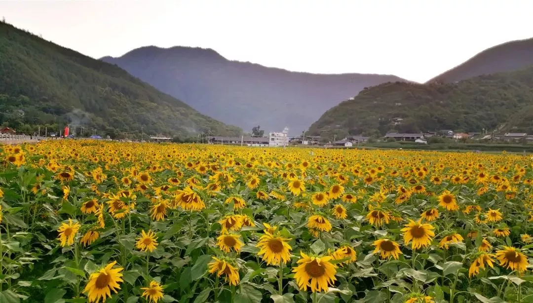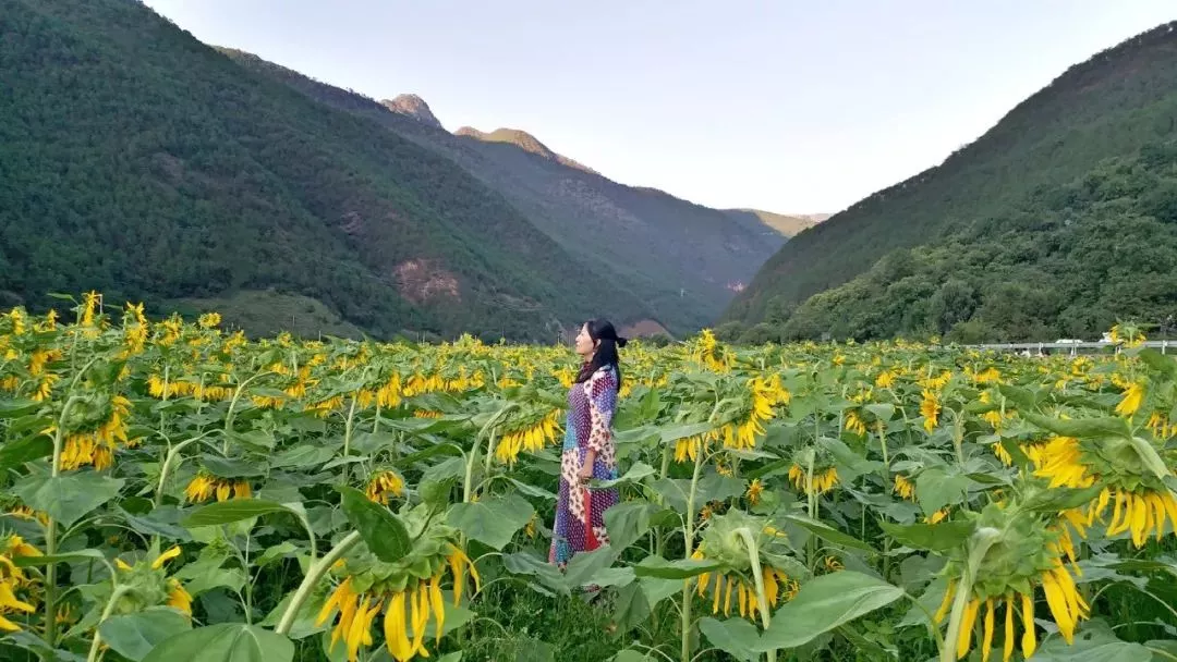 距离其宗村3公里的塔城镇启别村它洒,有一片200亩的向日葵花海,成片成片的金灿灿的向日葵花沐浴在阳光下,当微风吹过,便会泛起阵阵黄绿相间的“浪花”。