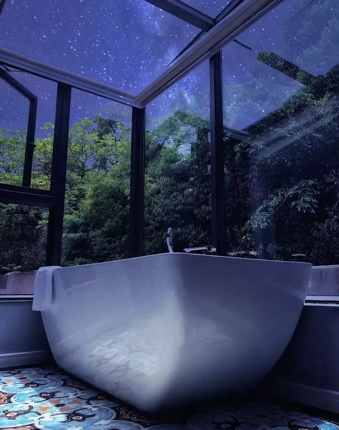 而“其宗神泉”就在民宿旁边,这可是PH值7.9龙潭纯净泉水,在漫天星空下用神泉水泡澡,绝对是神仙般的享受。