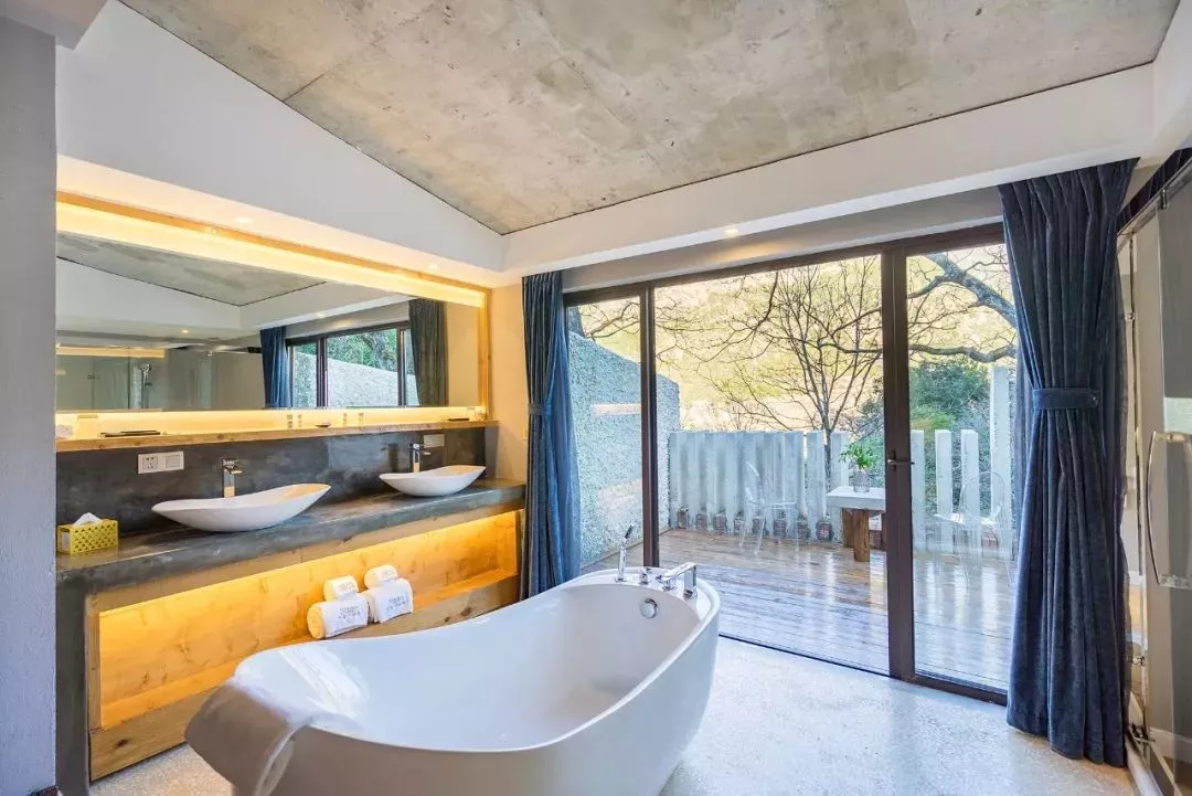不仅客房舒适敞亮,有的还配有露台或庭院,在此抬头望山、夜观星河,是多少人梦寐以求的一方天地。