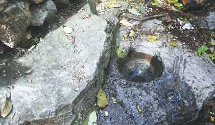 ▲依山而建的石对臼。