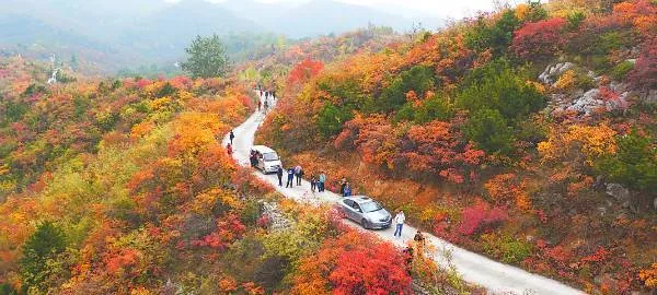 ▲精准扶贫、全域旅游、保护古村落等政策的出台,为长岭村的发展带来了千载难逢的好机遇。图为游客们在驻足观赏红叶美景。