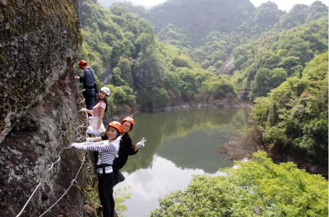 东浒寨飞拉达攀岩,景区最火热的游玩项目、全亚洲最长的户外攀岩线、有四条攀爬线:体验线,A线,B线,C线。