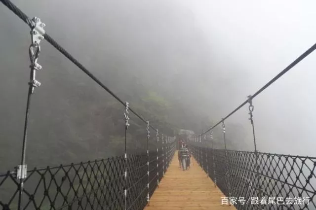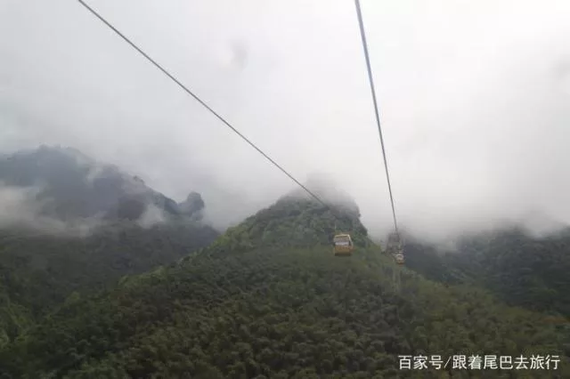 坐一级索道可以直接在山底坐,从一级索道到二级索道需要爬半小时的路,从二级索道到金顶需要爬四十分钟的路。所以从武功山底到金顶最快一个半小时就可以到达。坐在索道上可以看到下方郁郁葱葱的竹林,时不时还能看到长了几米长的竹笋。在这个季节去武功山驴友真的绝好,一望无际全是绿油油的,有些地方还能看到新长的绿叶和鲜花。我们去的时候下了点小雨,武功山被一片浓浓的云雾笼罩。爬到半山腰,武功山彻底被云雾覆盖了,能见度不足百米。在武功山半腰有一个很长的索桥,在山顶有一个大的和一个小的玻璃栈道,人走在上面瑟瑟发抖。