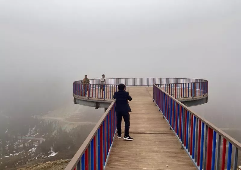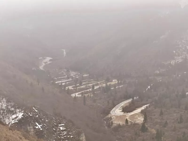 在观景台上看到28道拐网红路闪了一下就被磅礴的大雾淹没了。