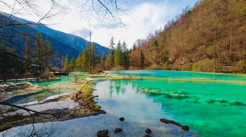 “蓝天白云清风里,山林海碧水云间。人间瑶池何处寻,嫩恩桑措入眼帘。”巧夺天工的形态,清澈通透的湖水,五光十色的光影,像一颗颗宝石镶嵌在绿色的地毯上,让人留连忘返、不知所归。