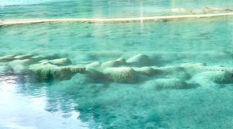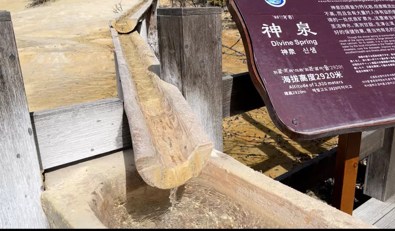 现在我们看到的是神泉,由于特殊的地形以及当地独特的地质结构,这里的水质偏硬、含钙量较高,且四周皆为钙化岩,神奇的是这泉眼里流出的潺潺清泉却含钙量不高,而且富含大量对人体有益的微量元素偏硅酸,由此缓缓涌流在金银滩上半部分,形成了一汪清亮的水源。